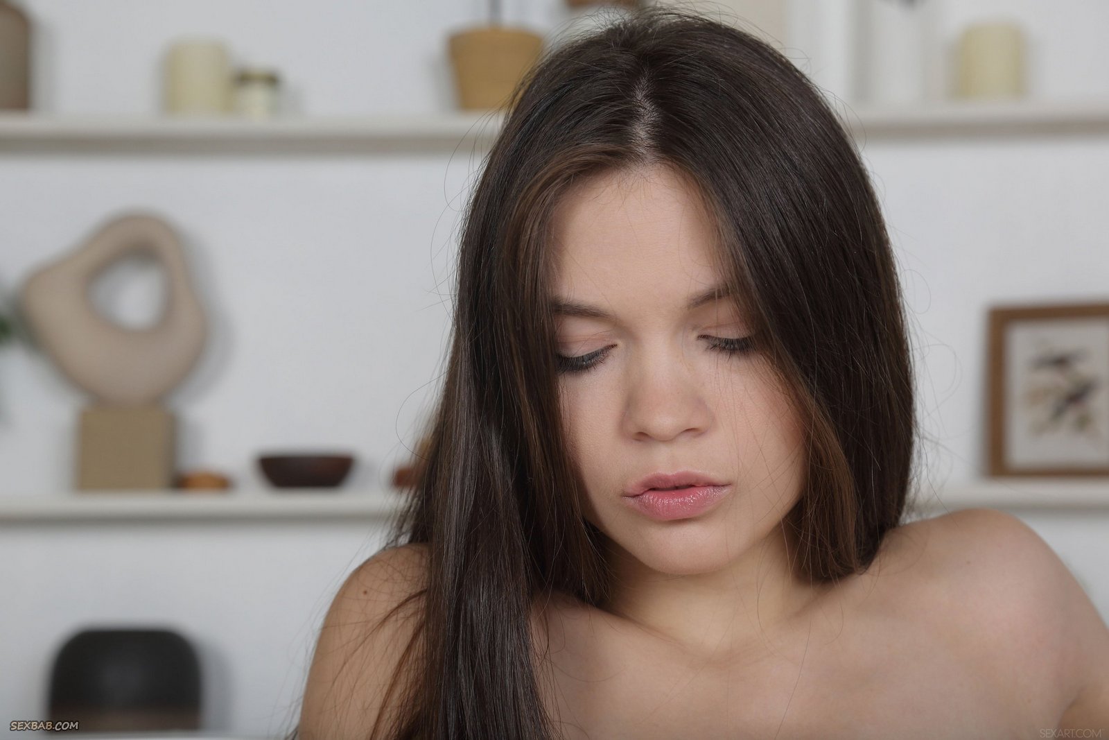 Описание: Заперевшись в ванной комнате и соблазнительно медленно стянув с себя длинный халат, молодая голая девица эротично опускается перед нами на пол и с широко раздвинутыми ногами во всей красе демонстрирует нам свою бритую промежность, игриво теребя пальчиками розовую киску с нежными половыми губками.