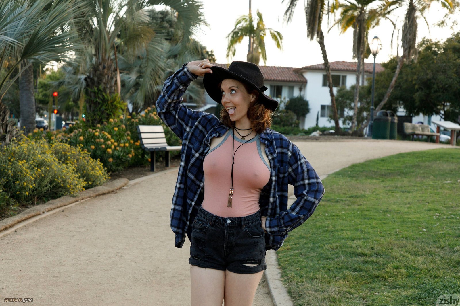 Описание: Прогуливаясь на улице, грудастая девушка в облегающей майке под которой не было лифчика эротично позирует и в какой-то момент светит натуральные сиськи с торчащими сосочками перед фотокамерой. Получая от процесса самые яркие эмоции, сексуальная милашка порой поворачивалась спиной и делала акцент на подкаченных ягодицах.