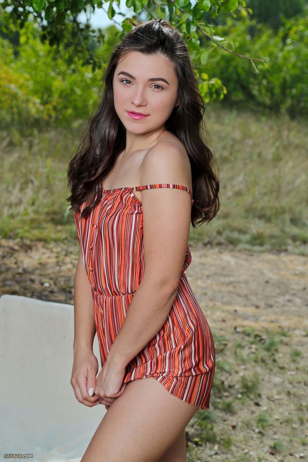 Описание: Сексуальная развратная брюнетка в летнем комбинезоне соблазнительно медленно сняла с себя всю одежду и показала свои голые прелести на камеру. Чувственно позируя на фоне природы, молодая детка с миниатюрными сиськами усаживается на заранее принесенный стул и широко раздвигает ноги с голой бритой промежностью.