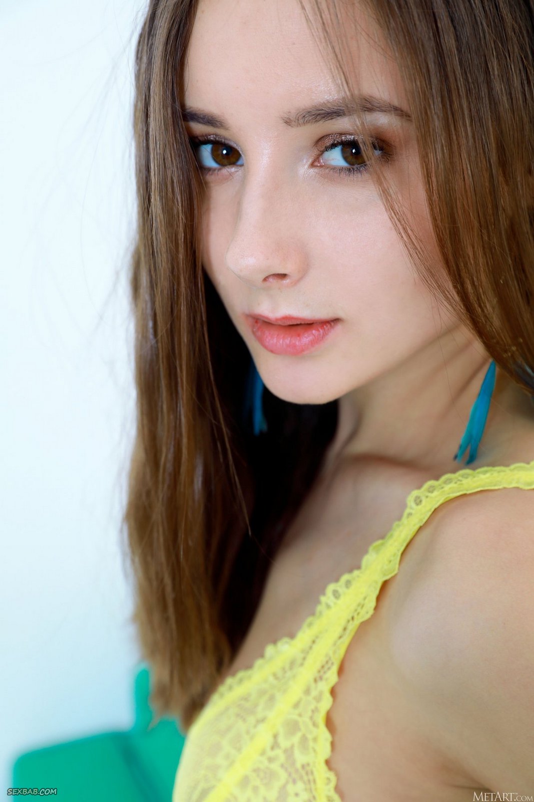 Описание: Очаровательная милая девушка в желтом нижнем белье флиртует с фотографом, который с ней сегодня работает. Соблазнительная брюнетка игриво разделась до гола, а затем открыто села на диван, демонстрируя на камеру свои маленькие сиськи и нежную гладкую киску.