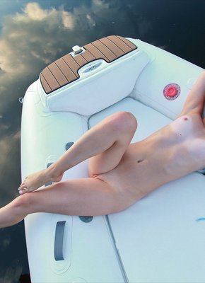 Голая тёлка в резиновой лодке
