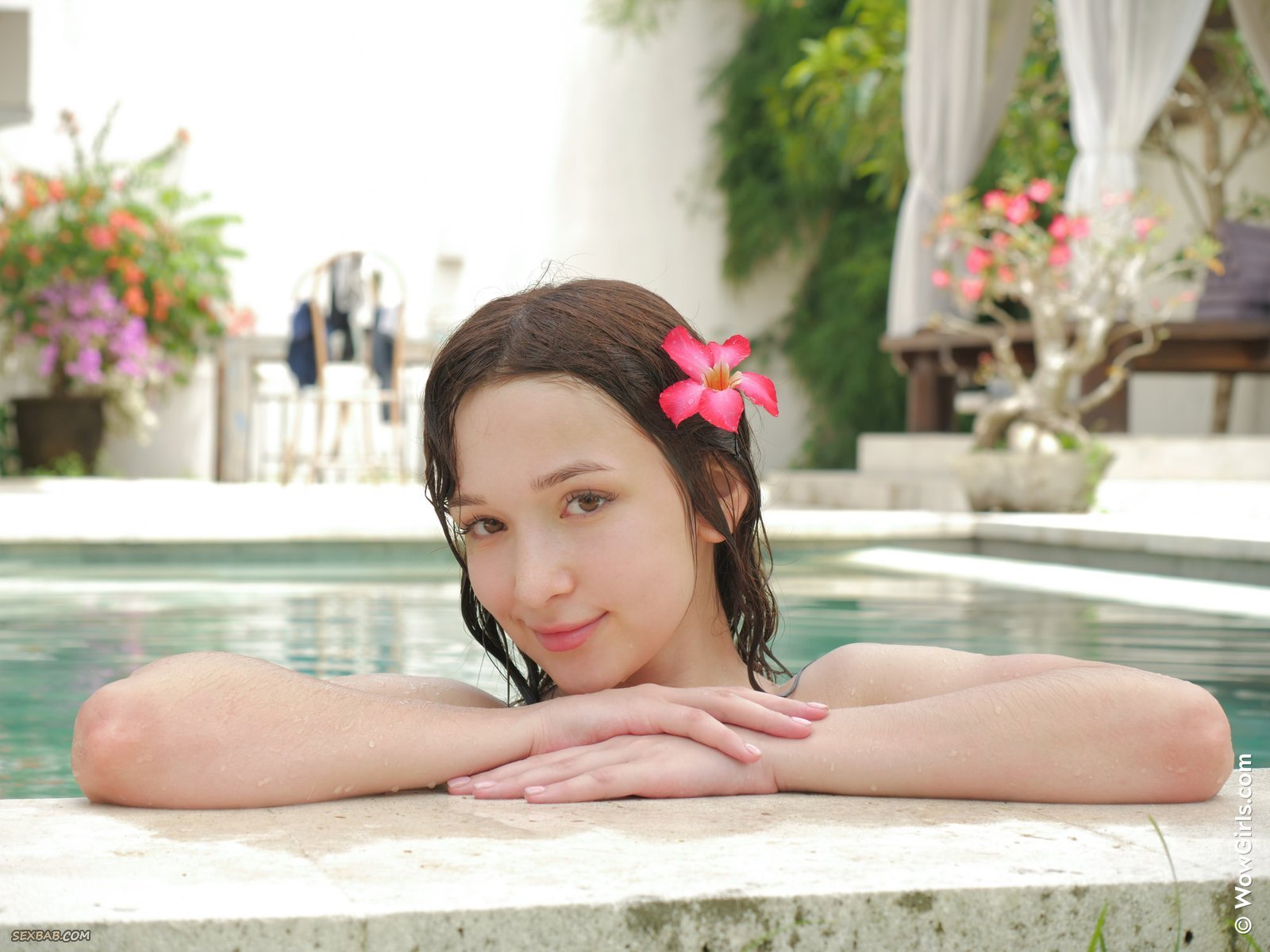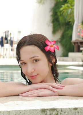 Милашка с сочной попкой в бассейне