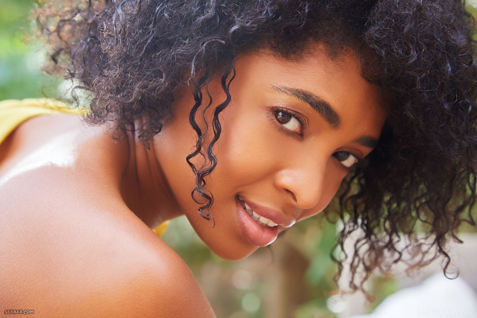 Описание: Расположившись на стуле рядом с загородным домом, очаровательная длинноногая негритянка в туфлях начинает эротично позировать и снимать коротенькое платье, под которым не оказалось нижнего белья. В обнаженном виде сексуальная красотка показывает маленькие сиськи с торчащим сосочками и письку с прической на лобке.