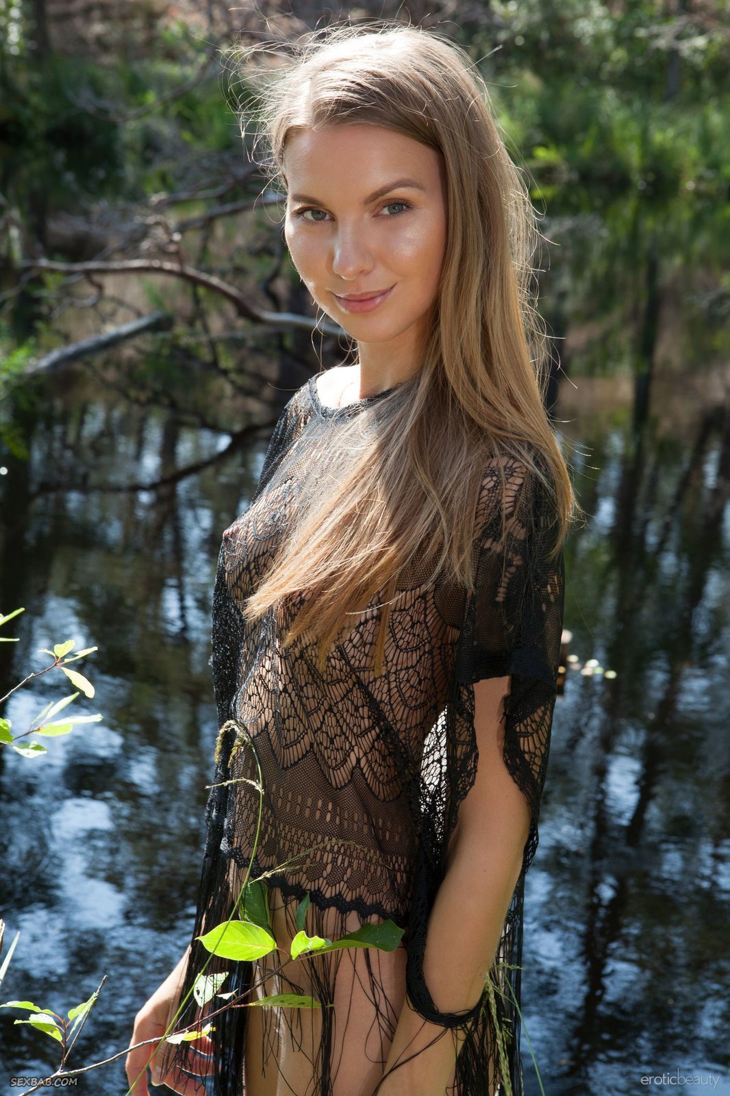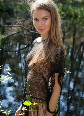 Описание: Начав эротично позировать в лесу, очаровательная стройняшка с милейшей улыбкой скинула с себя всё лишнее и позволяя нам понаблюдать за ней нежно поглаживала себя руками. Располагаясь на бревне, белокурая девушка с маленькой грудью во всей красе продемонстрировала аккуратную попку и бритую письку.
