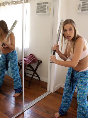 Грудастая блондинка Бритни Эмбер сосет и трахается в жопу с большим членом вора (20 фото)